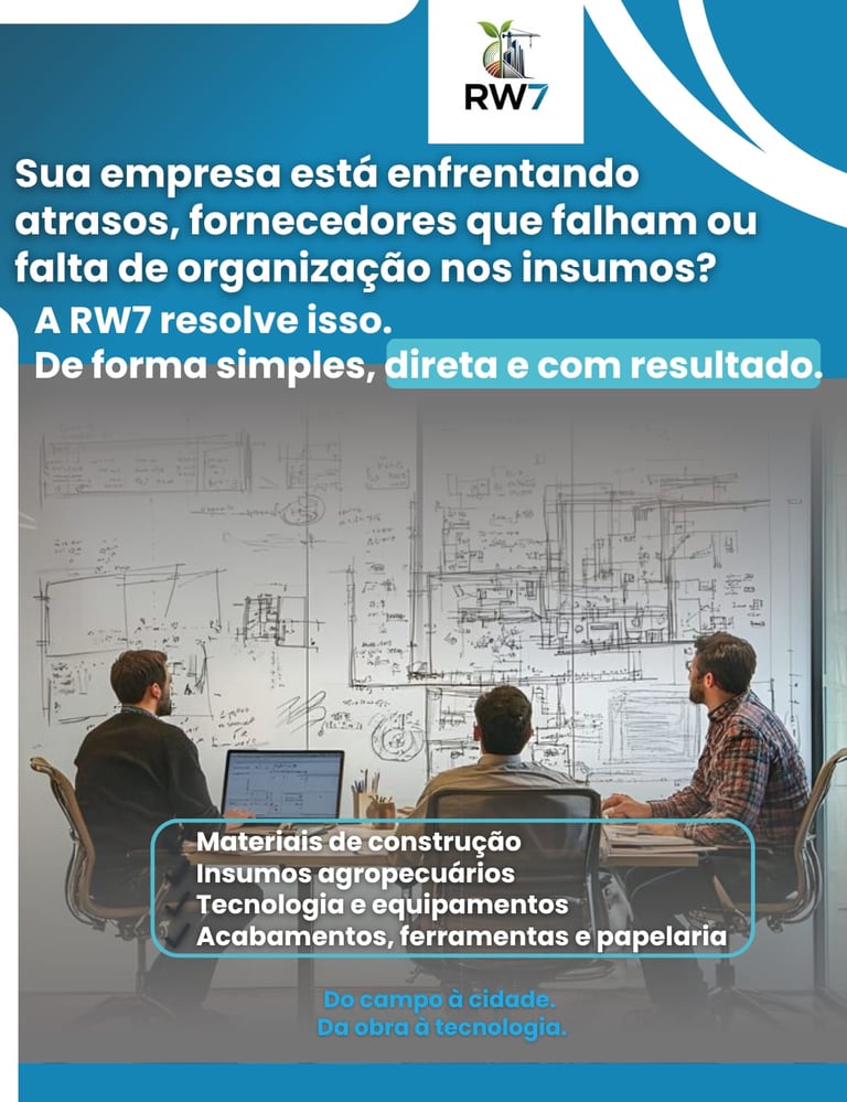 Atendemos negócios que atuam do agronegócio à construção civil, do atacado ao varejo, oferecendo sistemas inteligentes de gestão, automação comercial, controle de estoque, emissão fiscal e muito mais. Se sua empresa comercializa insumos, materiais elétricos, ferramentas, vidros, defensivos ou tecnologia, a RW7 tem a solução ideal para integrar processos, reduzir erros e impulsionar resultados. Tecnologia sob medida para quem quer crescer com segurança.